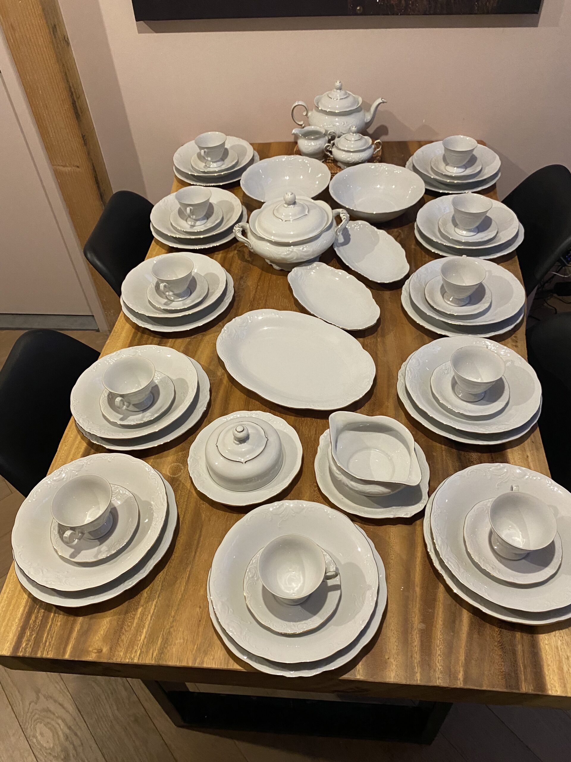 Vitro porselein wordt op zeer hoge temperatuur gebakken waardoor het series krasbesteding, duurzaam en niet poreus is. De set is ideaal voor veelvuldig gebruik. Vitro porselein wordt veel gebruikt in drukke horeca gelegenheden. De set heeft dan ook nauwelijks gebruikerssporen.
