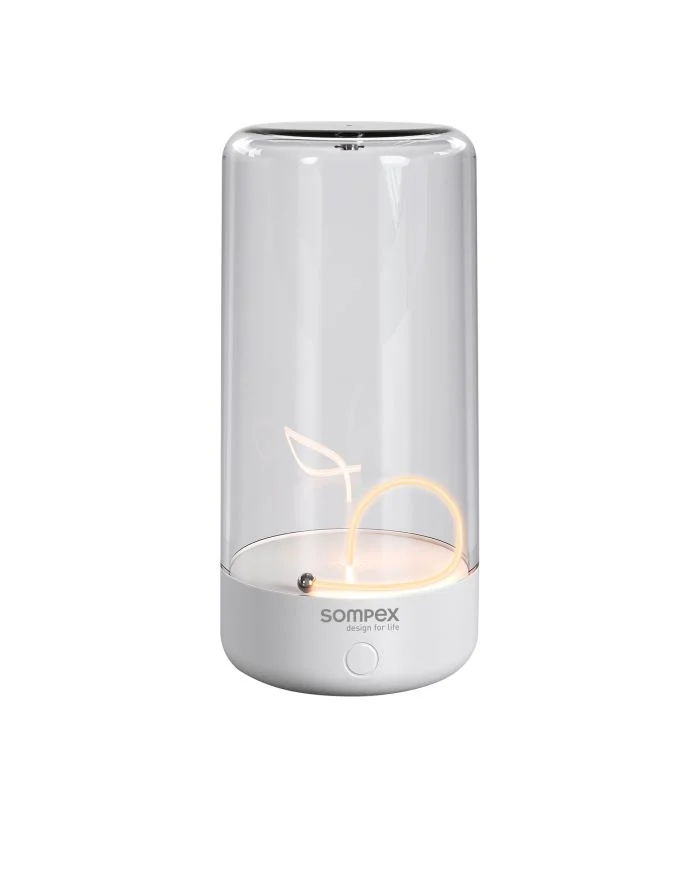 Ervaar modern design en innovatieve verlichtingstechnologie met de nieuwe PULSE tafellamp: de LED gloeidraad van de PULSE lijkt in de lucht te zweven zonder extra ondersteuning. Bij nadere inspectie zie je dat het stalen balletje aan het uiteinde van de gloeidraad wordt aangetrokken door een magneet die in de kunststof behuizing is ingebed. Door voorzichtig te schudden kan de gloeidraad van de magneet worden losgemaakt en in het licht worden bewogen. Indien nodig kan de armatuur worden omgekeerd en de gloeidraad opnieuw worden ingesteld. Dankzij de IP54-classificatie creëert de armatuur zowel binnen als buiten een aantrekkelijke sfeer. De PULSE kan eenvoudig worden opgeladen via USB-C. Met behulp van de aanraaksensor kun je kiezen uit drie lichtinstellingen: 15% helderheid (subtiel omgevingslicht), 100% helderheid en pulserend licht. De PULSE is ideaal als tafellamp voor restaurants, als moderne decoratieve lamp op een dressoir of als stijlvolle bureauaccessoire.