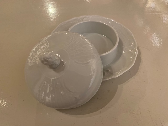 1x broodschaal op poot (dia 34,5cm en 9,5 cm hoog)